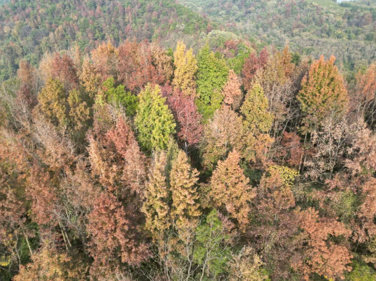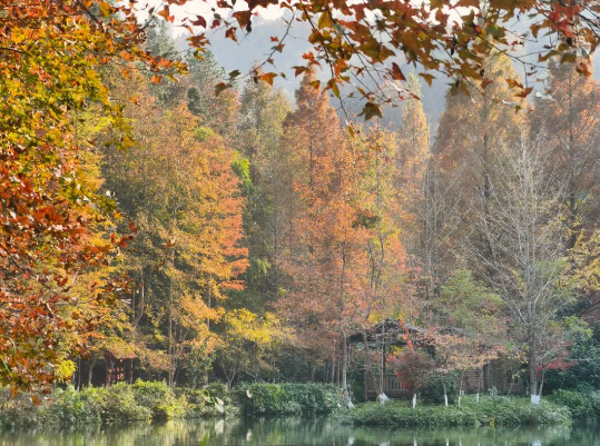 三姐湖畔边三角枫、乌桕树与水杉交相辉映