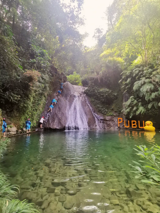 或选择沿山间步道随行,看同伴在瀑流中嬉戏