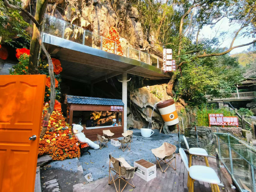 在悬崖咖啡上倚栏而坐