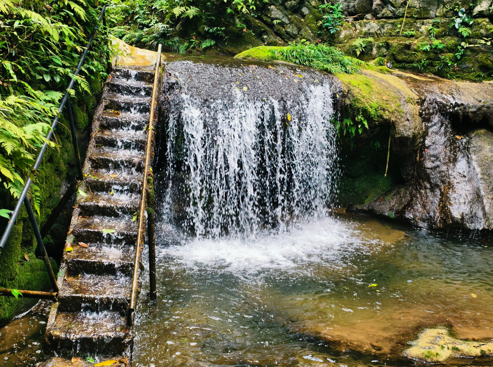 顺着溪流前行,多级瀑布群错落飞涌