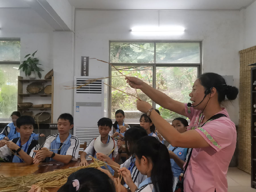 在导师的指导下学习搓绳、编织,