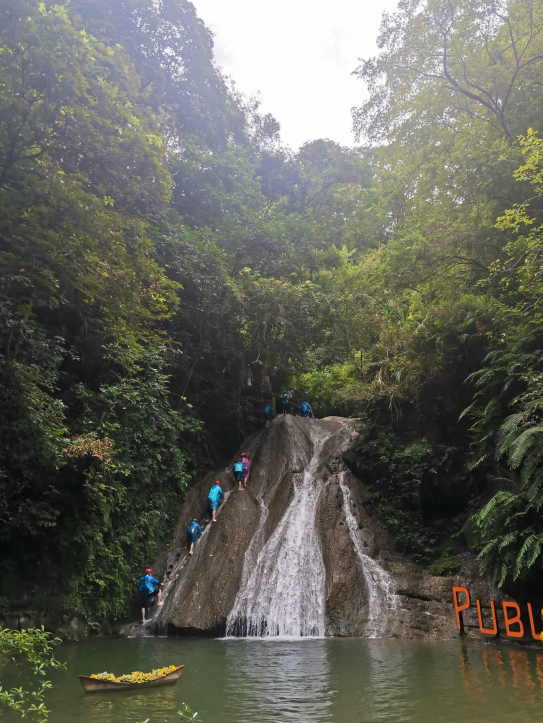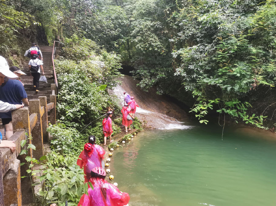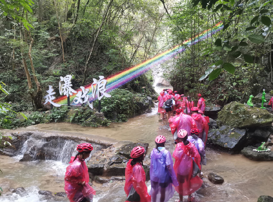 爬瀑布就像红军长征中爬雪山、过草地时展现的坚韧不拔、不畏艰险、团结互助的大无畏革命精神!