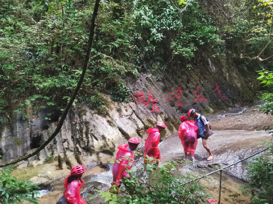 师生们面对湍急的水流与湿滑的岩壁,大家相互搀扶、彼此鼓励,