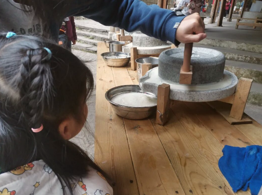 沉浸式体验打糍粑、竹竿舞、磨豆浆、红枫拓印