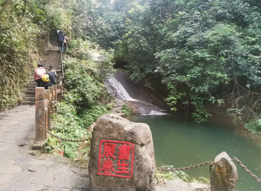 或选择沿山间步道随行,看同伴在瀑流中嬉戏
