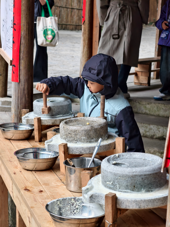 竹竿舞、打糍粑、磨豆浆、红枫拓印......