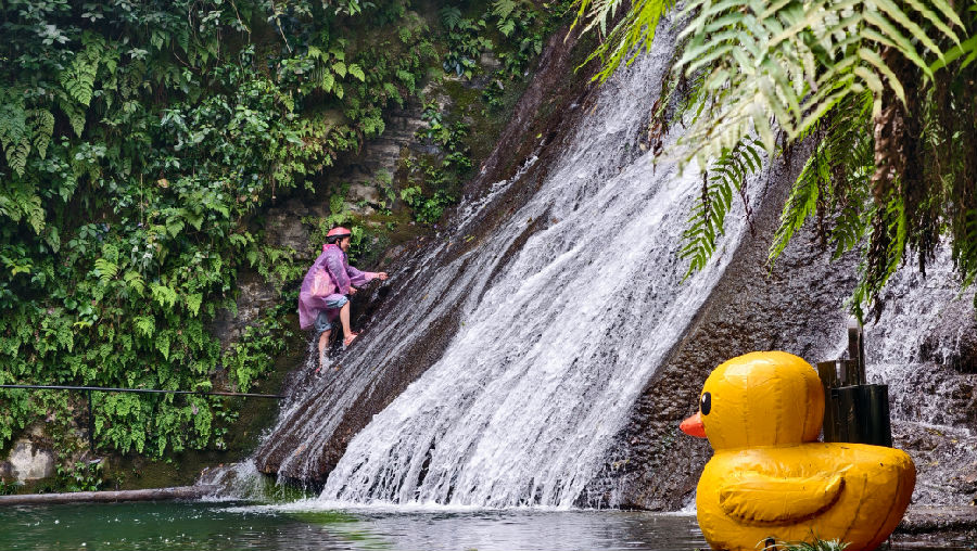 体验惊险又有趣的攀爬瀑布