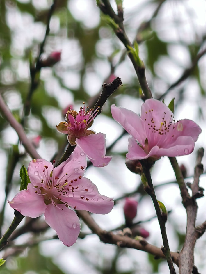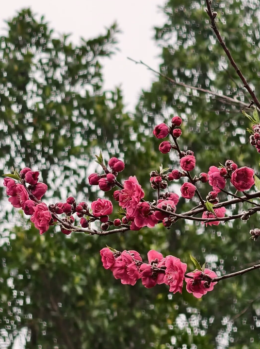 桃花与碧桃晕开层层粉霞
