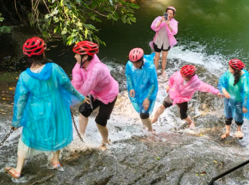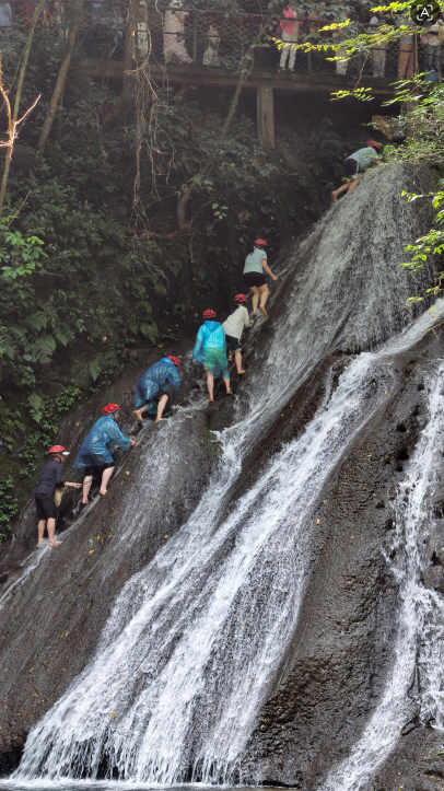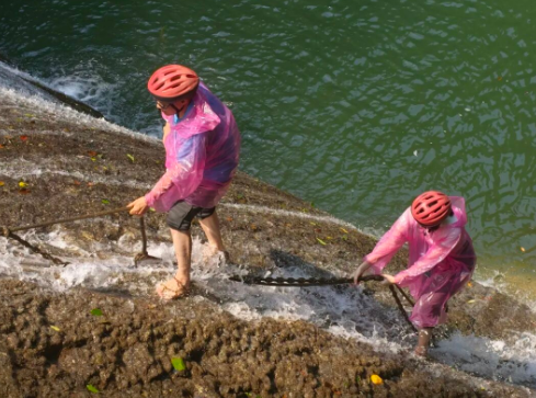 在2026年4月17日至20日,“三月三”活动期间穿戴草鞋、头盔,攀爬瀑布,挑战成功即能获得【古东银票】,兑换惊喜。