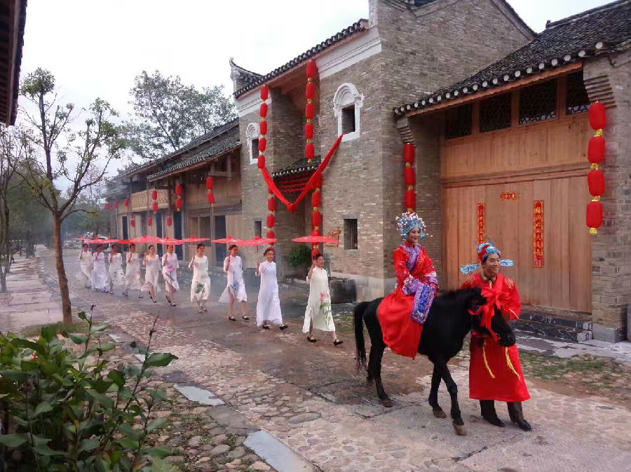 漓水人家景区试营业以来,以优美的风景、深厚的人文气息以及独特的桂北古民居吸引了大量桂林市民和来自全国各地的游客。近日某电视台也慕名前来拍摄宣传片。宣传片包含了传统接亲场景、传统建筑、传统手工艺等多种元素,对宣扬和推广传统文化,有着极为积极的作用。
