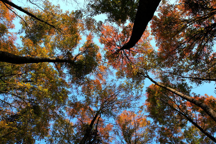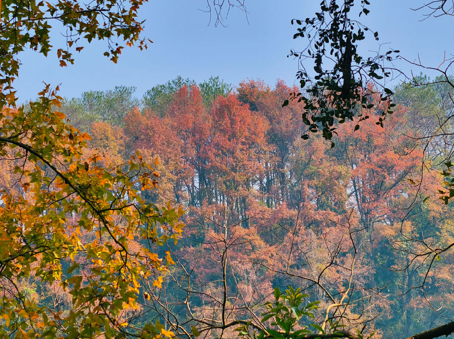 沿枫林画廊缓缓下山,道旁的枫树伸手可触