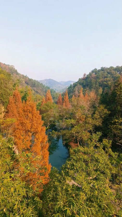行至三姐湖边解锁古东赏枫的“神仙视角”