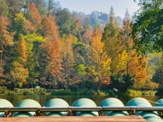 枫红、杉黄、云白倒映在波光里轻轻晃动