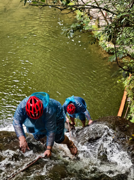 顺着溪流前行,多级瀑布群错落飞涌
